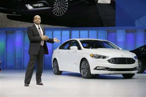 Ford mostrou versões atualizadas do seu híbrido Fusão e plug-in carros híbridos. Presidente Executivo Bill Ford disse que há menos demanda por veículos de combustível alternativo, quando os preços do gás são tão baixos, mas as montadoras ainda deve fazê-los.