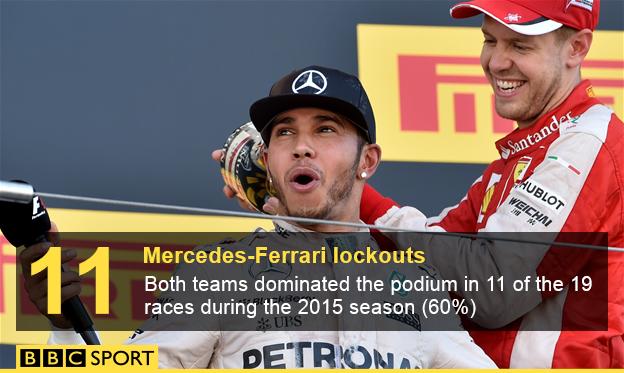 Ecclestone fez uma comparação entre a dominação Mercedes 'e que de McLaren-Honda em 1988, quando Ayrton Senna e Alain Prost venceu 15 das 16 corridas entre eles.