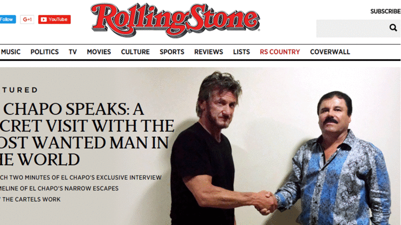 Por intermédio da atriz mexicana Kate del Castillo, que mantinha contato com El Chapo desde 2012, Sean Penn encarou 13 horas de viagem partindo de Los Angeles até o esconderijo do narcotraficante no meio da selva mexicana em 2 de outubro de 2015, segundo reportagem assinada por ele e publicada no site da revista Rolling Stone.