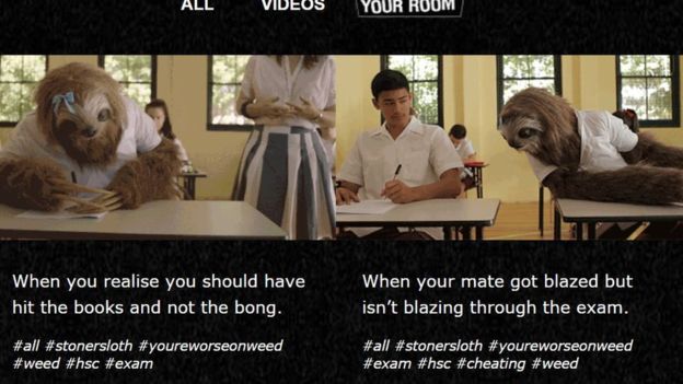 A campanha Stoner Sloth, financiado pelo governo do estado de Nova Gales do Sul, visa parar os adolescentes fumando maconha.