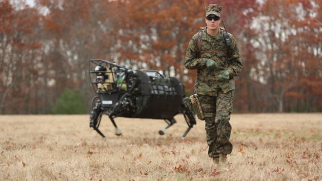 O LS3 foi desenvolvido pela Boston Dynamics - uma empresa de robótica adquirida pela Google em 2013 - como parte de uma aliança com o braço de pesquisa do Pentágono, a Agência de Projetos de Pesquisa de Defesa Avançada (Darpa).